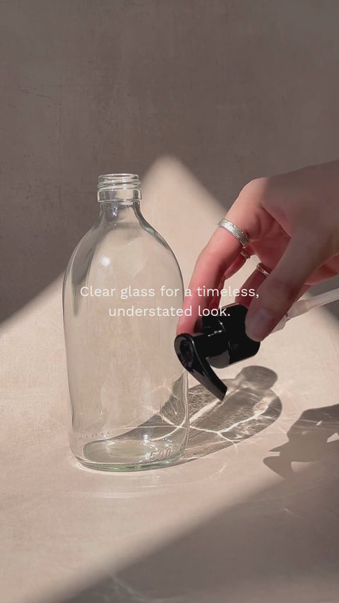 This clear glass pump bottle offers an elegant, eco-conscious solution for presenting hand soap. The removable pump top makes refilling effortless, helping to reduce packaging waste and promote sustainability.