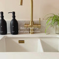 Fabricado con vidrio de primera calidad con acabado negro mate, cada dispensador está impreso directamente con tintas cerámicas orgánicas, garantizando una superficie impermeable, resistente al calor y ultra duradera que no se desvanecerá ni pelará, incluso en entornos cálidos y húmedos. A diferencia de las botellas etiquetadas tradicionales, este diseño sin costuras mantiene una apariencia limpia y refinada que perdura.