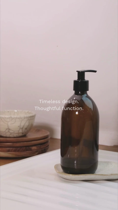 Este dispensador de jabón de vidrio ámbar es un recipiente ideal para tu producto elegido. Perfecto para el lavado de manos, la bomba de plástico negro se desenrosca, permitiendo un fácil rellenado y reduciendo el desperdicio de embalaje.